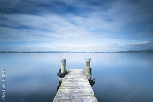© patma145, Fototapeta premium Zamrożony czas. Minimalistyczny krajobraz nad jeziorem. Długa ekspozycja.