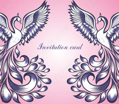 © ksysha, Naklejka premium Zaproszenie ozdobione łabędziami