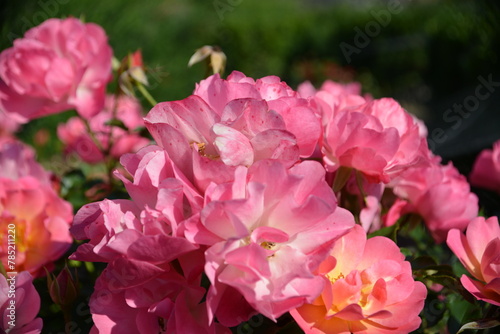 © Pawel Hordjewicz, Fototapeta premium Zarte Rosa Rosenblüten-Romantischer Gartenhintergrund