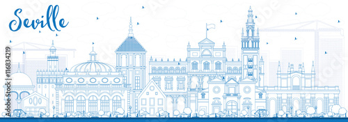 Fototapeta premium Zarys panoramę Sewilli z niebieskimi budynkami.