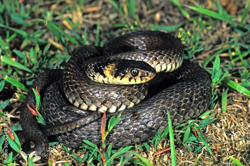 Fototapeta premium Zaskroniec, Natrix natrix, postawa obronna