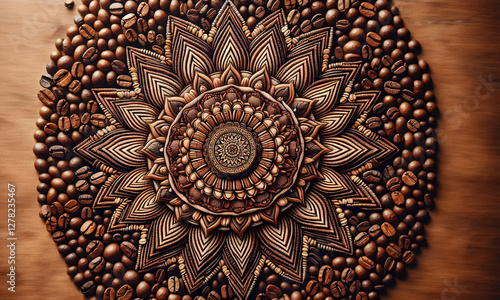 Obraz premium Zauberhaftes Mandala, gelegt aus Kaffeebohnen, braun, Hintergrund