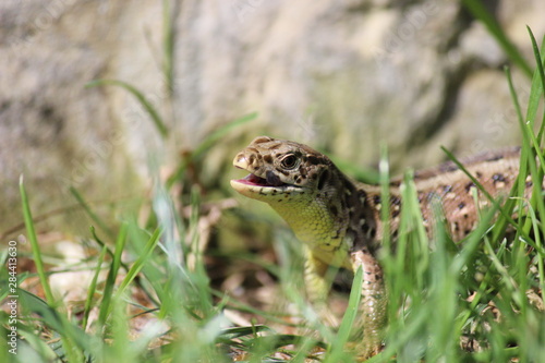 Naklejka premium Zauneidechse mit geöffnetem Maul!