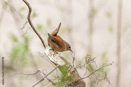 Fototapeta premium Zaunkönig sitzt auf einem Ast