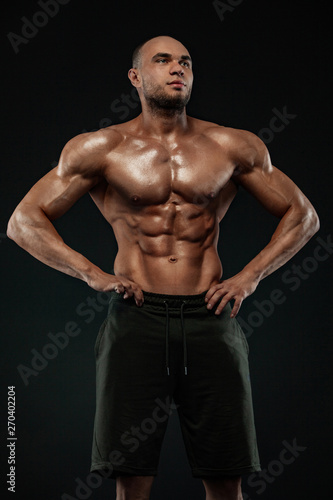 © Mike Orlov, Fototapeta premium Zawody kulturystyczne na scenie. Kulturysta sportowców człowieka i sportowca. Motywacja do ćwiczeń.