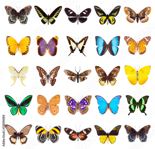 © Acronym, Fototapeta premium Zbiór pięknych i kolorowych motyli na białym tle.