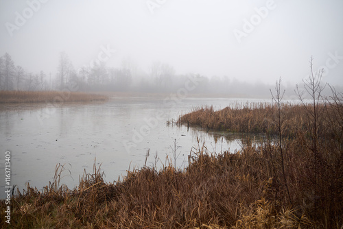© Marcin Łazarczyk, Obraz premium zbiornik wodny,brzeg,mgła