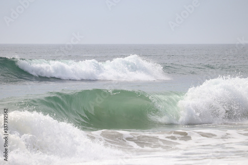 © Mark R. Courtney, Fototapeta premium Zbliżenie curling fal oceanu w pobliżu plaży