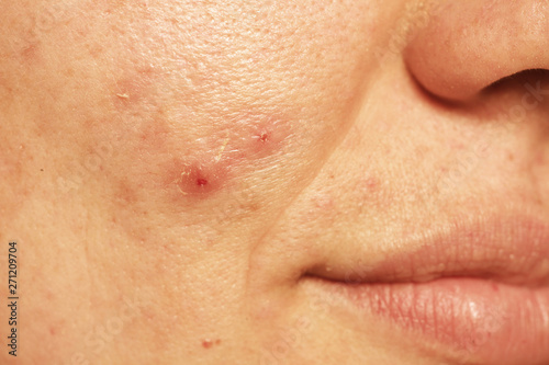 © vladimirfloyd, Obraz premium zbliżenie kobiecej twarzy z problematyczną skórą