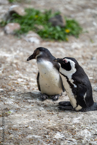 Fototapeta premium zbliżenie, mały czarno biały pingwin, wybieg w zoo