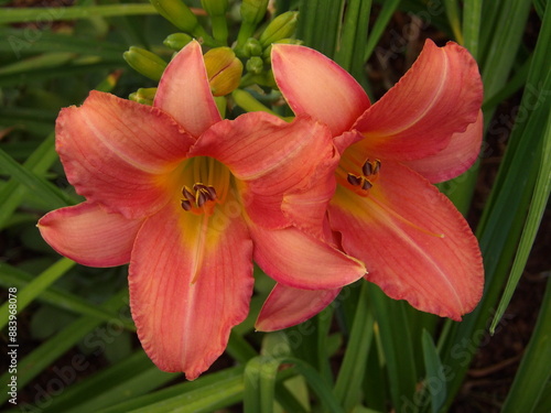 © Kumulugma, Fototapeta premium Zbliżenie na barwny kwiat liliowca (hemerocallis)