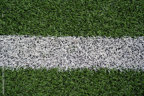 © Arkadiusz, Obraz premium zbliżenie na białą linię boiska, sztuczna trawa
