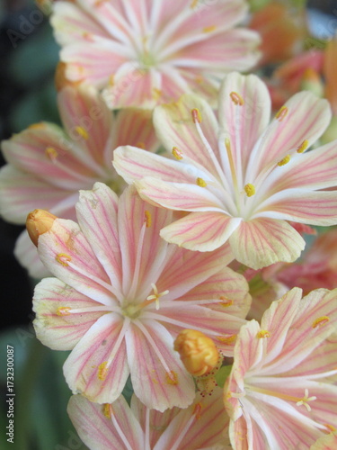 © Kumulugma, Fototapeta premium Zbliżenie na kwiaty sukulenta z gatunku lewizja