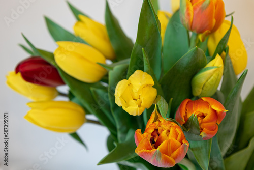 © Magorzata, Naklejka premium zbliżenie na żółte i czerwone tulipany, bukiet
