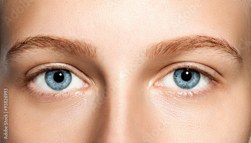 © deniskomarov, Fototapeta premium Zbliżenie niebieskie oczy kobiety bez makijażu