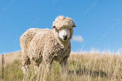 Fototapeta premium zbliżenie owiec merynosów przeciw błękitne niebo