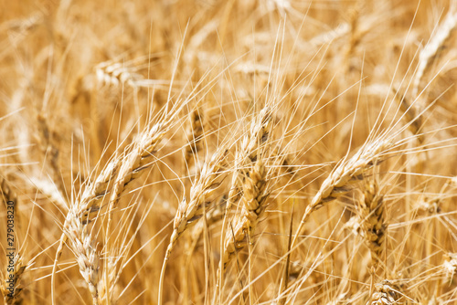 © ulkan, Fototapeta premium Zbliżenie pola pszenicy. Koncepcja zbiorów i żywności.