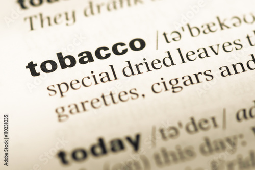© TungCheung, Obraz premium Zbliżenie starej strony słownika języka angielskiego z tytoniem słowo