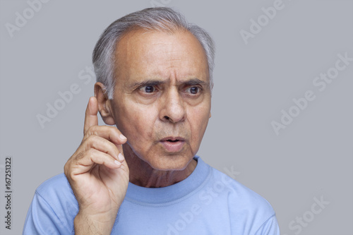 © IndiaPix, Fototapeta premium Zbliżenie: starszy mężczyzna na szarym tle