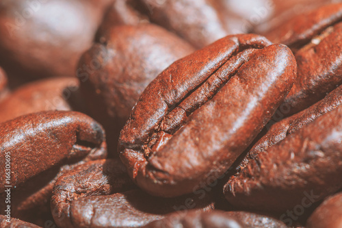 Naklejka premium Zbliżenie ziarna kawy, makro obrazu