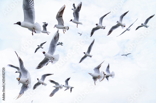 © emerald_media, Obraz premium zdjęcia latającej rodziny mewa