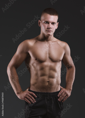 © tesphoto, Fototapeta premium Zdrowy, mięśniowy, młody człowiek. Portret sportowy.