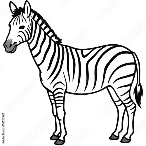 Fototapeta premium Zebra animal with black stripes, isolated on a white background, in a wildlife vector illustration