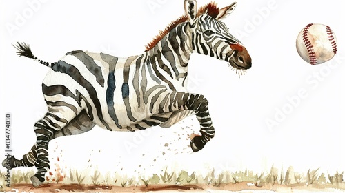 Obraz premium Zebra as a baseball pitcher in motion, complete with a cute,The scene is set against a pure white background
