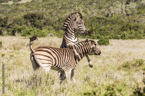 © bondsza, Fototapeta premium Zebra at play in long grass