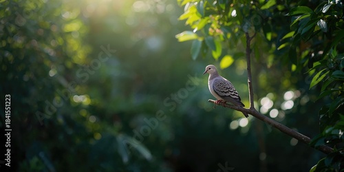 Obraz premium Zebra Dove perched on a tree branch in a lush forest setting, tropical bird...