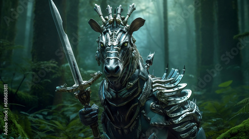 Fototapeta premium Zebra Forest Guard, digital ai art.