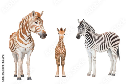 Obraz premium Zebra Giraffe and Okapi on transparent background
