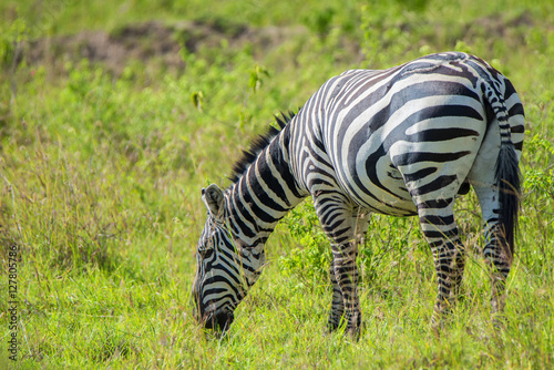 © Yakov, Fototapeta premium Zebra grazing in savanna