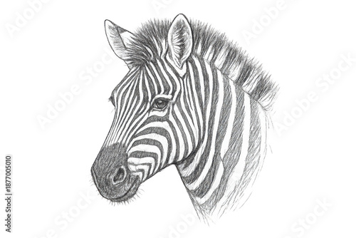 Fototapeta premium Zebra head pencil drawing on a transparent background illustration.