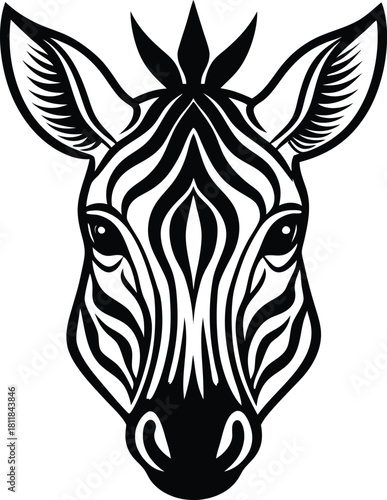 © Taufiq, Obraz premium Zebra head vector illustration in black and white