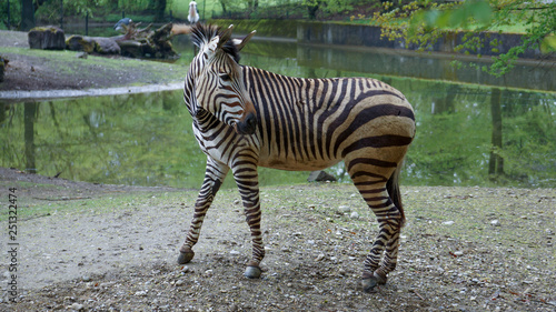 © Horner, Naklejka premium zebra in front of water hole looking backwards