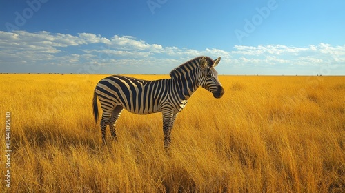 © khajar, Naklejka premium Zebra in Golden Savanna