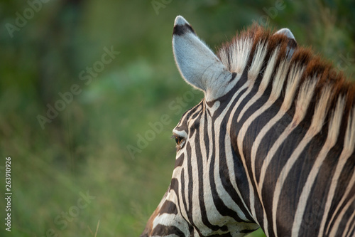 © Darrel, Naklejka premium Zebra in the grass with early morning glow.
