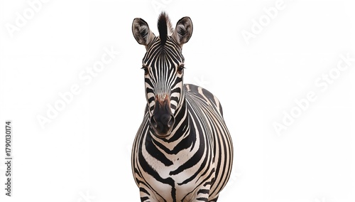 Fototapeta premium Zebra isolated against a plain backdrop, highlighting the animal's striking...
