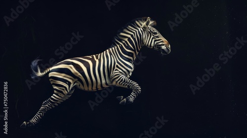 © Vladimir, Naklejka premium Zebra jump on a black background. Flying animal.