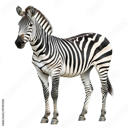 © Full PNG, Fototapeta premium zebra left view A full body shot Look forward white background