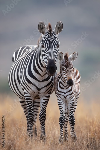 © capylines, Fototapeta premium Zebra mother and calf in savanna (2)