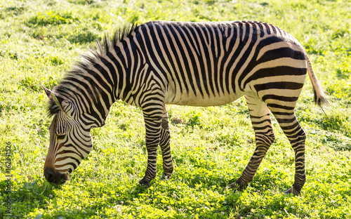 Fototapeta premium Zebra on green grass in nature