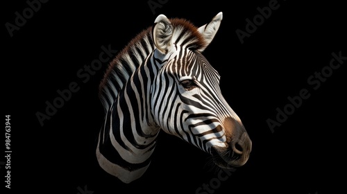 © BerkahStock, Fototapeta premium Zebra Portrait Against a Black Background