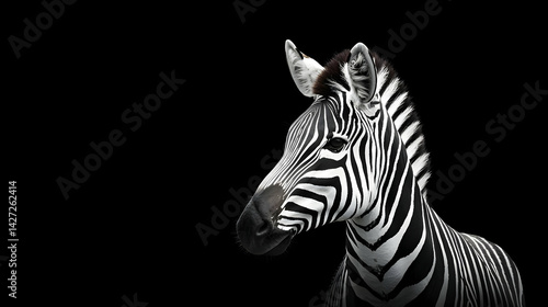 © artzone, Fototapeta premium Zebra Portrait Against Black Background
