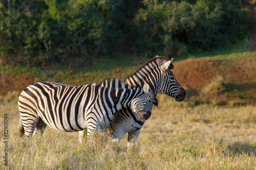 © charissalotter, Fototapeta premium Zebra rubbing his head against his partner