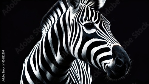 © CreativeBro, Fototapeta premium Zebra's head showcasing black and white stripes in the wild