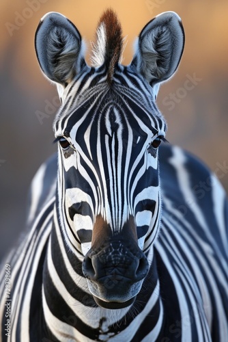 © Landscape Planet, Naklejka premium Zebra's Striking Features: Distinctive Stripes and Expressive Eye Close-Up
