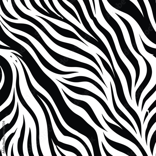© Tarek, Obraz premium Zebra skin background seamless vector pattern featuring black and white animal print design, perfect for fabric, fashion, and textile applications with a bold and stylish look