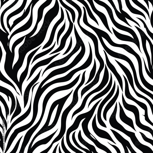 © Tarek, Obraz premium Zebra skin background seamless vector pattern featuring black and white animal print design, perfect for fabric, fashion, and textile applications with a bold and stylish look